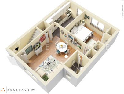 Garden Style, large one bedroom-one bath apartment with a dining area.